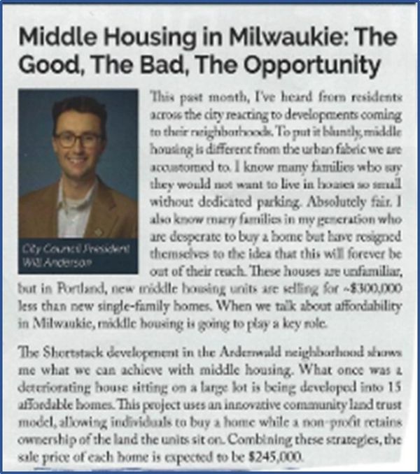 The above is a photo of a column written by Milwaukie Council President Will Anderson, appearing in the June 2025 "Milwaukie Pilot."