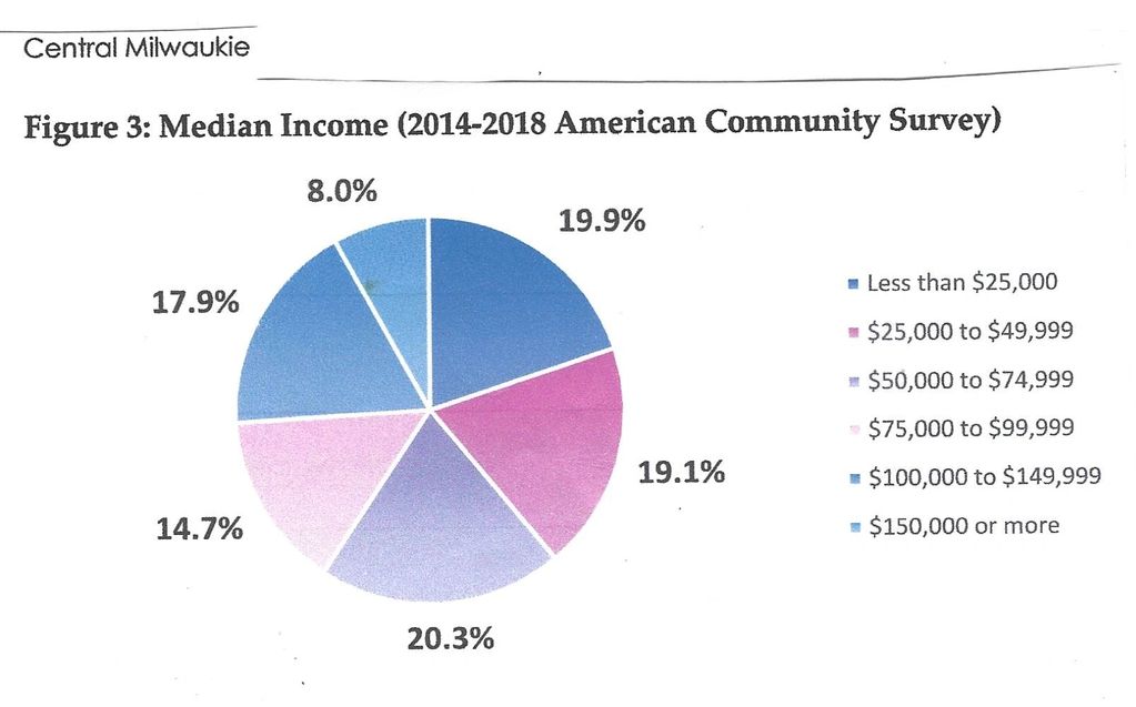 Nearly 40% of Central Milwaukie households make less than $50,000 per year. The City wide average for Milwaukie at large is about $64,000 per year. There are a few households who make more than $150,000 per year (8% of households in Central Milwaukie). Ideally, it is said that no more than 30% of one's household income should go to housing. If you make Milwaukie's city wide median of $64,000