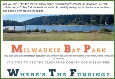 Last Friday (9/27/24), Milwaukians organized a rally/protest over the North Clackamas County Parks and Recreation District (NCPRD) withholding monies for the long sought after improvements at Milwaukie Bay Park, such as amphitheater, rest rooms and other amenities.