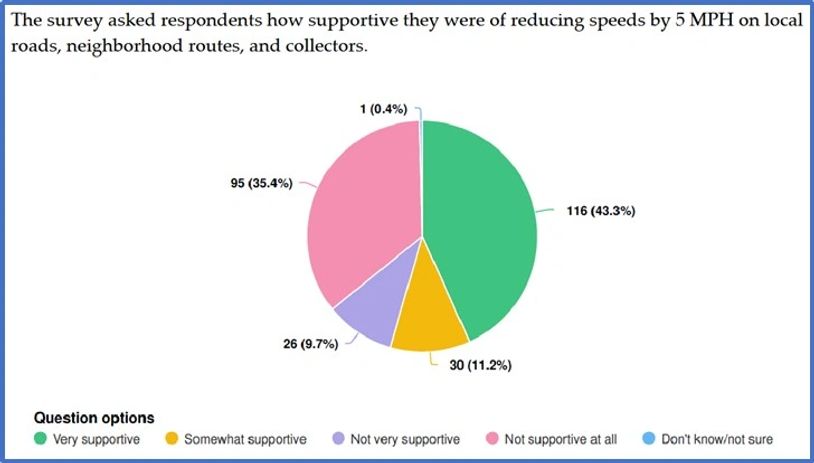 Milwaukie's on-line survey of city residents, shows the Milwaukie residents are more supportive, than not, of reducing speed limits on Milwaukie's neighborhood streets, from the current 25 mph down to 20 mph.
