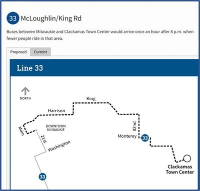 TriMet is making system wide service cuts to save $150 million dollars per year. The cuts in service begin in late August of this year (2026). The cuts are not too draconian. The biggest change for the City of Milwaukie is that the Bus line 33 that runs from downtown Milwaukie to Clackamas Town Center, via Harrison and King, is changing to service every hour after 8 pm versus currently running every half hour.
